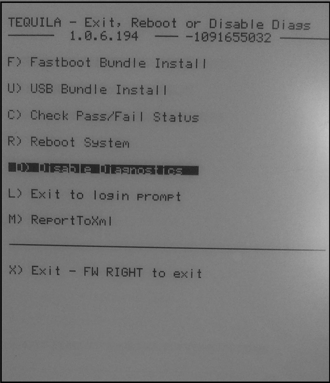 - with the 5 way button choose “D) Exit, Reboot or Disable Diags” img-003